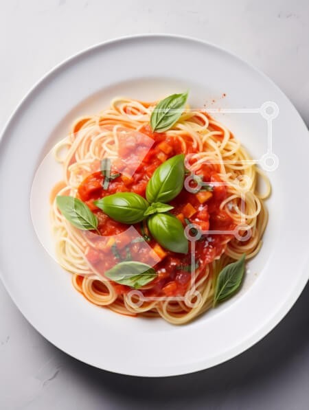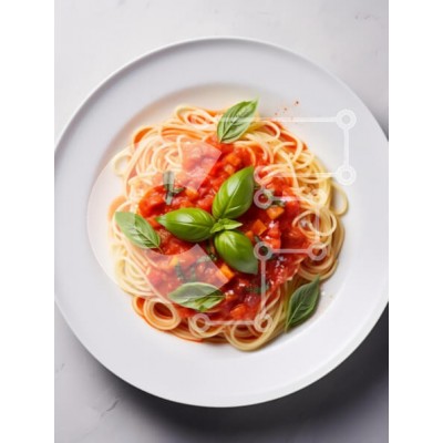 Υπάρχει δυνατότητα προσωποποίησης με δική σας φωτογραφία και προσαρμογής διαστάσεων κατόπιν παραγγελίας. Το συγεκεριμενο puzzle παρουσιαζει Αυτή η εικόνα παρουσιάζει ένα πιάτο με σπαγγέτι με πλούσια σάλτσα ντομάτας και γαρνιρισμένο με φρέσκα φύλλα βασιλικού. Τα ζυμαρικά είναι τακτοποιημένα με κυκλικό τρόπο, επιδεικνύοντας τη ζωντανή κόκκινη σάλτσα που ενισχύεται διακριτικά από τα λαχανικά κομμένα σε κύβους. Τα λαμ