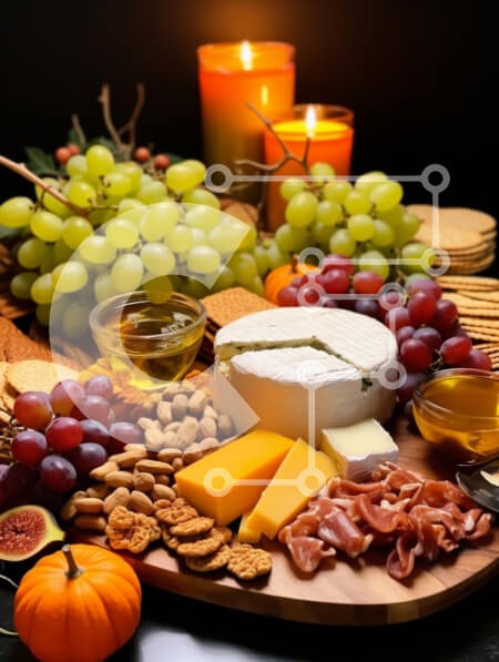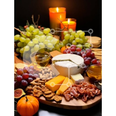 Υπάρχει δυνατότητα προσωποποίησης με δική σας φωτογραφία και προσαρμογής διαστάσεων κατόπιν παραγγελίας. Το συγεκεριμενο puzzle παρουσιαζει Αυτή η εικόνα παρουσιάζει μια κομψή σανίδα τυριών και αλλαντικών, όμορφα διαρρυθμισμένα με ποικιλία φαγητών. Ο πίνακας περιλαμβάνει διαφορετικούς τύπους τυριών, σταφύλια, ξηρούς καρπούς, κράκερ και αλλαντικά, όλα με έντεχνο τρόπο. Η ζεστή λάμψη των κεριών στο φόντο προσθέτει μ