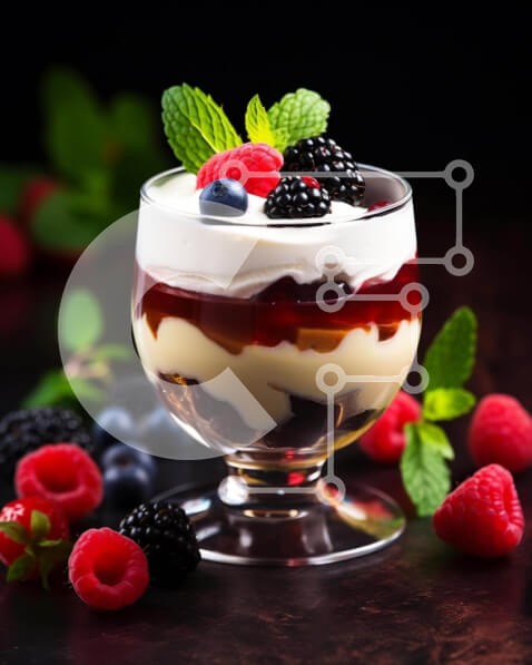 Υπάρχει δυνατότητα προσωποποίησης με δική σας φωτογραφία και προσαρμογής διαστάσεων κατόπιν παραγγελίας. Το συγεκεριμενο puzzle παρουσιαζει Η εικόνα δείχνει ένα μικρό πιάτο γεμάτο με λαχταριστά μούρα, σαντιγί και φρέσκα φύλλα μέντας. Γύρω από το πιάτο υπάρχουν διάφορα φρούτα όπως φράουλες, κεράσια, σταφύλια, μήλα, ροδάκινα, δαμάσκηνα και σμέουρα, μαζί με ένα μικρό φλιτζάνι τοποθετημένο στη μέση του γλυκού. Ένα μο