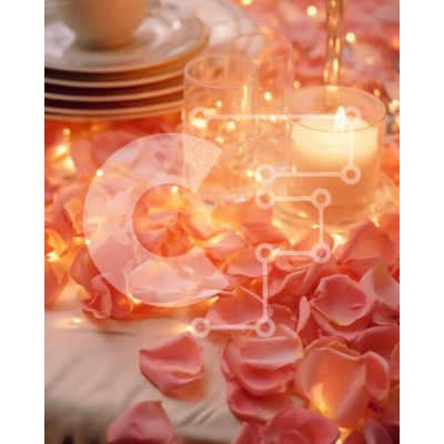 Υπάρχει δυνατότητα προσωποποίησης με δική σας φωτογραφία και προσαρμογής διαστάσεων κατόπιν παραγγελίας. Το συγεκεριμενο puzzle παρουσιαζει Η εικόνα παρουσιάζει ένα τραπέζι διακοσμημένο με ροζ πέταλα, κεριά, πιάτα και ασημικά. Στη μέση του τραπεζιού τοποθετείται ένα κερί, ενώ εκατέρωθεν του τραπεζιού αρκετές πλάκες. Επιπλέον, υπάρχουν δύο ποτήρια τοποθετημένα το ένα δίπλα στο άλλο, τα οποία θα μπορούσαν να χρησιμο
