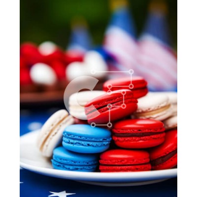 Υπάρχει δυνατότητα προσωποποίησης με δική σας φωτογραφία και προσαρμογής διαστάσεων κατόπιν παραγγελίας. Το συγεκεριμενο puzzle παρουσιαζει Η εικόνα δείχνει ένα πιάτο γεμάτο με κόκκινα, λευκά και μπλε αμυγδαλωτά, τοποθετημένα σε ένα τραπεζομάντιλο σε σχήμα αμερικανικής σημαίας. Διάφορα άλλα επιδόρπια, συμπεριλαμβανομένων cupcakes και brownies, απλώνονται επίσης σε όλο το τραπέζι, δημιουργώντας μια εορταστική έκθεσ
