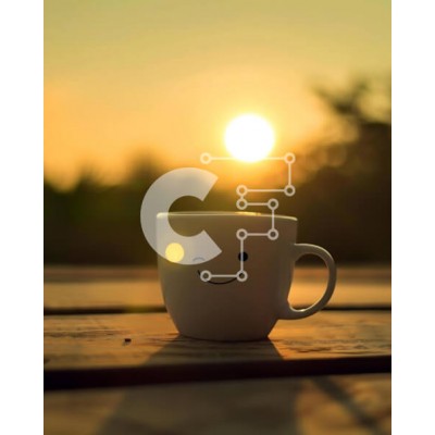 Υπάρχει δυνατότητα προσωποποίησης με δική σας φωτογραφία και προσαρμογής διαστάσεων κατόπιν παραγγελίας. Το συγεκεριμενο puzzle παρουσιαζει Η εικόνα παρουσιάζει ένα λευκό φλιτζάνι καφέ πάνω από ένα υπαίθριο ξύλινο τραπέζι με τον ήλιο να δύει πίσω του. Ένα χαμογελαστό πρόσωπο είναι ζωγραφισμένο στο πλάι του φλιτζανιού, προσθέτοντας μια χαρούμενη πινελιά στη σκηνή. Μικρά κομμάτια ξύλου είναι διάσπαρτα γύρω από την ε