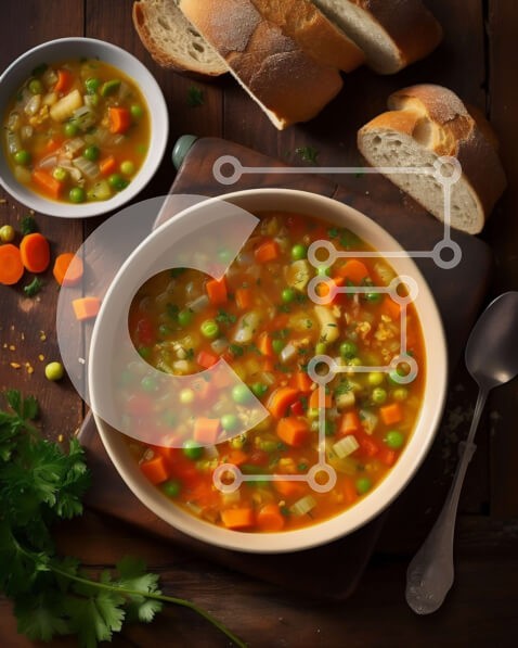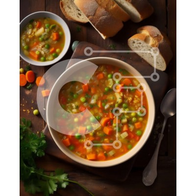 Υπάρχει δυνατότητα προσωποποίησης με δική σας φωτογραφία και προσαρμογής διαστάσεων κατόπιν παραγγελίας. Το συγεκεριμενο puzzle παρουσιαζει Αυτή η εικόνα είναι μια κοντινή λήψη ενός μπολ με σούπα λαχανικών που περιλαμβάνει καρότα, μπιζέλια και πατάτες. Η σούπα αχνίζει ζεστή και σερβίρεται με μια φέτα φρέσκο ψωμί στο πλάι. Φαίνεται νόστιμο και είναι τέλειο για μια κρύα μέρα. Ένα μοναδικό puzzle που συνδυάζει ποι