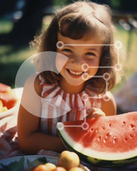 Υπάρχει δυνατότητα προσωποποίησης με δική σας φωτογραφία και προσαρμογής διαστάσεων κατόπιν παραγγελίας. Το συγεκεριμενο puzzle παρουσιαζει Η εικόνα απεικονίζει μια νεαρή κοπέλα να κάθεται στο τραπέζι του πικνίκ και να απολαμβάνει λίγο καρπούζι. Χαμογελάει καθώς κρατά το φρούτο στα χέρια της, υποδηλώνοντας ότι του αρέσει να το τρώει. Υπάρχουν πολλά άλλα φρούτα στο τραπέζι, όπως μήλα, πορτοκάλια και μπανάνες. Ένα