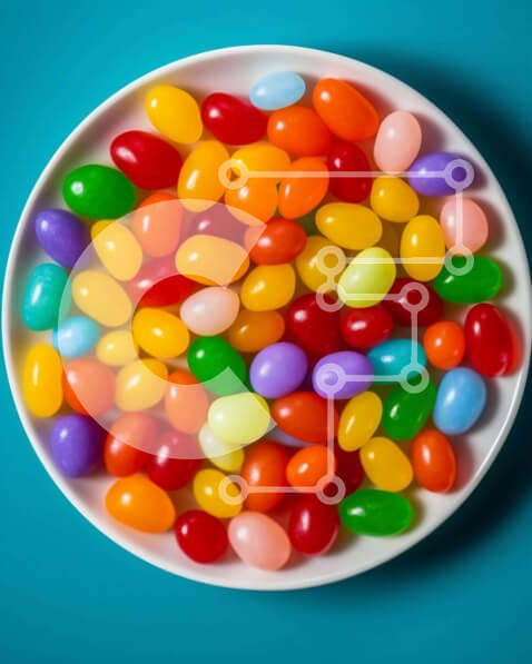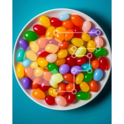 Υπάρχει δυνατότητα προσωποποίησης με δική σας φωτογραφία και προσαρμογής διαστάσεων κατόπιν παραγγελίας. Το συγεκεριμενο puzzle παρουσιαζει Η εικόνα παρουσιάζει ένα λευκό μπολ γεμάτο με πολύχρωμα φασόλια ζελέ, τα οποία είναι διάσπαρτα στην επιφάνεια του τραπεζιού. Υπάρχουν πολλά διαφορετικά είδη ζελέ που υπάρχουν στο μπολ, όπως κόκκινο, πράσινο, μπλε και κίτρινο. Το πιάτο τοποθετείται πάνω σε ένα πορτοκαλί φόντο,