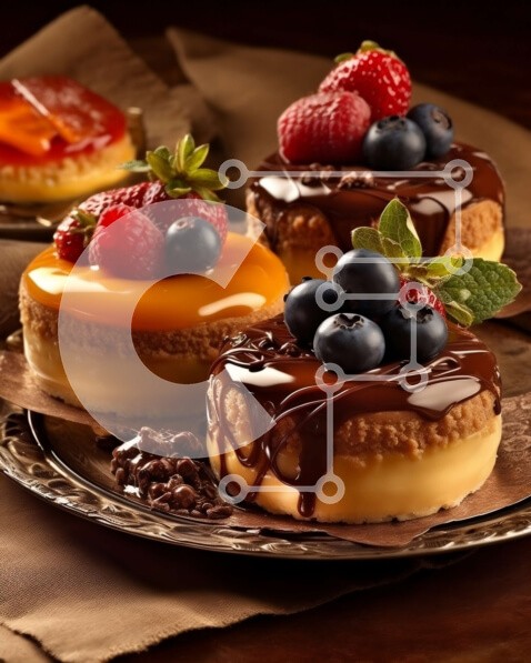 Υπάρχει δυνατότητα προσωποποίησης με δική σας φωτογραφία και προσαρμογής διαστάσεων κατόπιν παραγγελίας. Το συγεκεριμενο puzzle παρουσιαζει Αυτή η εικόνα δείχνει τέσσερις διαφορετικούς τύπους γλυκών, όπως κέικ σοκολάτας, κέικ βανίλιας, κέικ φράουλας και cheesecake σε ένα πιάτο. Τα επιδόρπια καλύπτονται με φρέσκα φρούτα όπως βατόμουρα, βατόμουρα και φράουλες και περιχύνονται με σάλτσα σοκολάτας και καραμέλας. Το πι