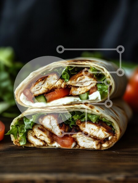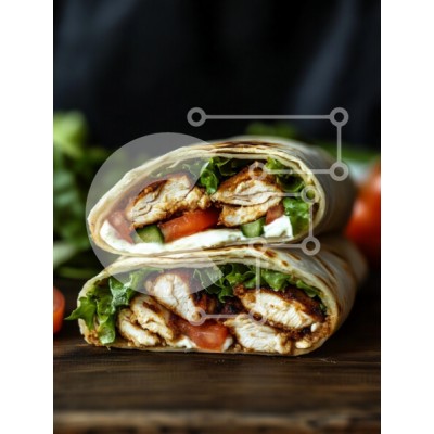 Υπάρχει δυνατότητα προσωποποίησης με δική σας φωτογραφία και προσαρμογής διαστάσεων κατόπιν παραγγελίας. Το συγεκεριμενο puzzle παρουσιαζει Αυτή η εικόνα παρουσιάζει ένα υπέροχο περιτύλιγμα γεμάτο με ψητό κοτόπουλο, φρέσκο μαρούλι, ντομάτες και αγγούρια, όλα τακτοποιημένα μέσα σε μια τορτίγια. Το περιτύλιγμα κόβεται στη μέση, αποκαλύπτοντας τα πολύχρωμα και ορεκτικά υλικά μέσα. Το φόντο έχει μερικά φυλλώδη πράσι