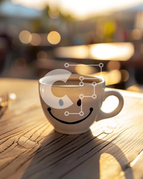 Υπάρχει δυνατότητα προσωποποίησης με δική σας φωτογραφία και προσαρμογής διαστάσεων κατόπιν παραγγελίας. Το συγεκεριμενο puzzle παρουσιαζει Αυτή η εικόνα παρουσιάζει ένα λευκό φλιτζάνι καφέ με ένα πορτοκαλί χαμογελαστό πρόσωπο, τοποθετημένο σε ένα ξύλινο τραπέζι. Σε κοντινή απόσταση, υπάρχουν πολλά πιρούνια και κουτάλια, που υποδηλώνουν ότι το άτομο που κάθεται στο τραπέζι απολαμβάνει τον καφέ του ενώ απολαμβάνει