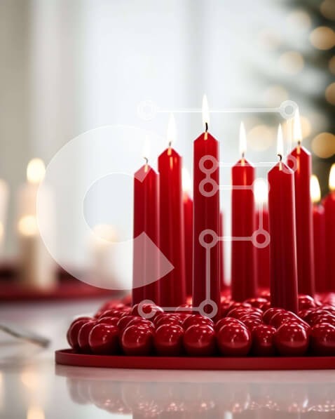 Υπάρχει δυνατότητα προσωποποίησης με δική σας φωτογραφία και προσαρμογής διαστάσεων κατόπιν παραγγελίας. Το συγεκεριμενο puzzle παρουσιαζει Αυτή η εικόνα δείχνει μια ομάδα από κόκκινα κεριά τοποθετημένα σε σχήμα μπάλες πάνω από ένα διακοσμημένο τραπέζι. Το τραπέζι είναι επίσης στολισμένο με πιρούνια, μαχαίρια, πιάτα, φλιτζάνια και άλλα ασημικά, υποδηλώνοντας ότι σερβίρεται γεύμα. Η κομψή διάταξη κεριών προσθέτει μ