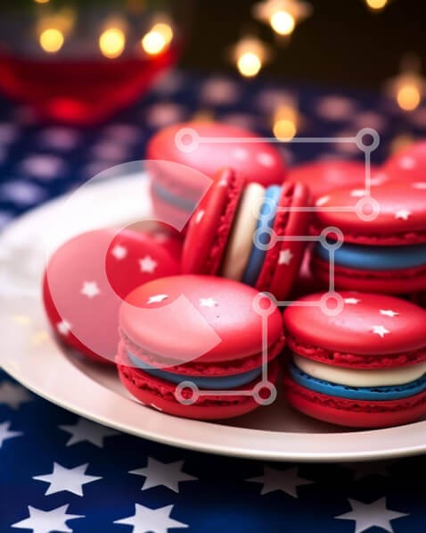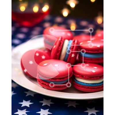 Υπάρχει δυνατότητα προσωποποίησης με δική σας φωτογραφία και προσαρμογής διαστάσεων κατόπιν παραγγελίας. Το συγεκεριμενο puzzle παρουσιαζει Η εικόνα παρουσιάζει ένα λευκό πιάτο με κόκκινα, λευκά και μπλε αμυγδαλωτά τοποθετημένα στην κορυφή, δημιουργώντας ένα πατριωτικό θέμα. Διάσπαρτα αστέρια προσθέτουν στη συνολική εορταστική ατμόσφαιρα και ένα μπουκάλι κόκκινο κρασί υπάρχει επίσης στο τραπέζι, υπονοώντας μια εορ