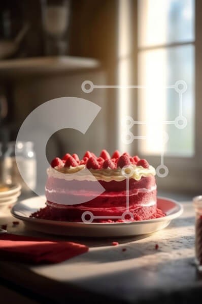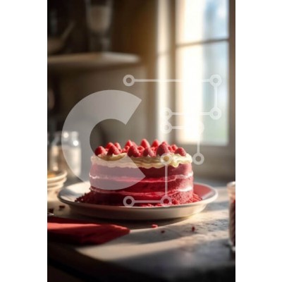Υπάρχει δυνατότητα προσωποποίησης με δική σας φωτογραφία και προσαρμογής διαστάσεων κατόπιν παραγγελίας. Το συγεκεριμενο puzzle παρουσιαζει Αυτή η εικόνα παρουσιάζει ένα κόκκινο βελούδινο κέικ με σμέουρα να κάθεται σε ένα πιάτο σε ένα τραπέζι δίπλα σε ένα παράθυρο. Το κέικ είναι καλυμμένο με λευκό frosting και έχει μια στρώση από βατόμουρα από πάνω. Ένα μαχαίρι τοποθετείται στο πιάτο δίπλα στο κέικ ενώ ένα ποτήρι