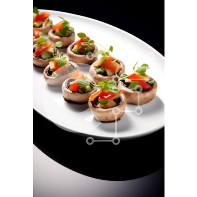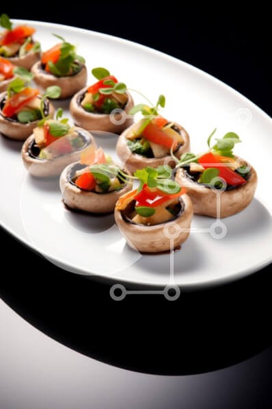 Υπάρχει δυνατότητα προσωποποίησης με δική σας φωτογραφία και προσαρμογής διαστάσεων κατόπιν παραγγελίας. Το συγεκεριμενο puzzle παρουσιαζει Η εικόνα παρουσιάζει μια πιατέλα με γεμιστά μανιτάρια τοποθετημένα τακτοποιημένα σε ένα κομψό λευκό πιάτο. Κάθε καπάκι μανιταριού είναι γεμάτο με πολύχρωμα λαχανικά κομμένα σε κύβους, όπως κόκκινες πιπεριές και πράσινα βότανα, γαρνιρισμένα με μικροπράσινα. Το πιάτο παρουσιάζετ