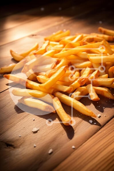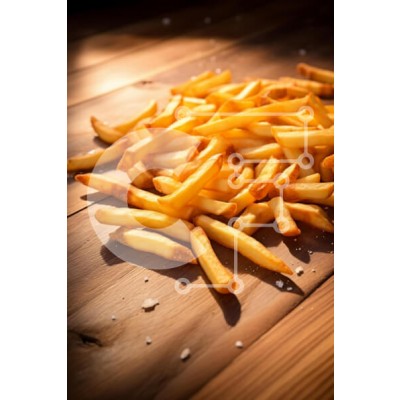 Υπάρχει δυνατότητα προσωποποίησης με δική σας φωτογραφία και προσαρμογής διαστάσεων κατόπιν παραγγελίας. Το συγεκεριμενο puzzle παρουσιαζει Η εικόνα παρουσιάζει ένα γενναιόδωρο σωρό από χρυσές, τραγανές τηγανητές πατάτες διάσπαρτες σε μια ξύλινη επιφάνεια. Οι πατάτες είναι ομοιόμορφα μαγειρεμένες, παρουσιάζοντας μια ποικιλία σχημάτων και μεγεθών, και γυαλίζουν ελαφρώς κάτω από το ζεστό φως. Μερικοί κόκκοι αλατιού