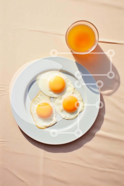 Υπάρχει δυνατότητα προσωποποίησης με δική σας φωτογραφία και προσαρμογής διαστάσεων κατόπιν παραγγελίας. Το συγεκεριμενο puzzle παρουσιαζει Η εικόνα παρουσιάζει ένα λευκό πιάτο με τρία τηγανητά αυγά πάνω του. Ένα φλιτζάνι χυμό πορτοκαλιού τοποθετείται δίπλα στο πιάτο, υποδηλώνοντας ότι κάποιος απολαμβάνει το πρωινό αυτή τη στιγμή. Υπάρχουν επίσης πολλά κομμάτια ψωμιού κοντά, τα οποία θα μπορούσαν να χρησιμοποιηθού