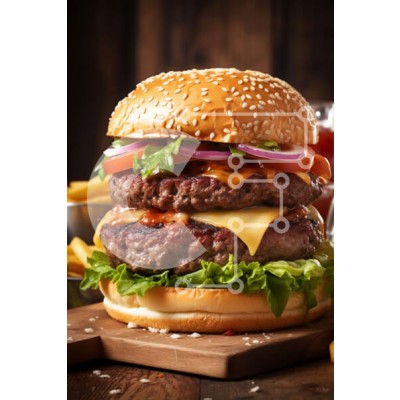 Υπάρχει δυνατότητα προσωποποίησης με δική σας φωτογραφία και προσαρμογής διαστάσεων κατόπιν παραγγελίας. Το συγεκεριμενο puzzle παρουσιαζει Αυτή η εικόνα απεικονίζει ένα χάμπουργκερ με ένα ζουμερό μοσχαρίσιο μπιφτέκι, λιωμένο τυρί, μαρούλι, ντομάτα και μια πλευρά με τηγανιτές πατάτες. Το μπιφτέκι είναι τέλεια συναρμολογημένο και φαίνεται έτοιμο για κατανάλωση. Ένα μοναδικό puzzle που συνδυάζει ποιότητα, αισθητική
