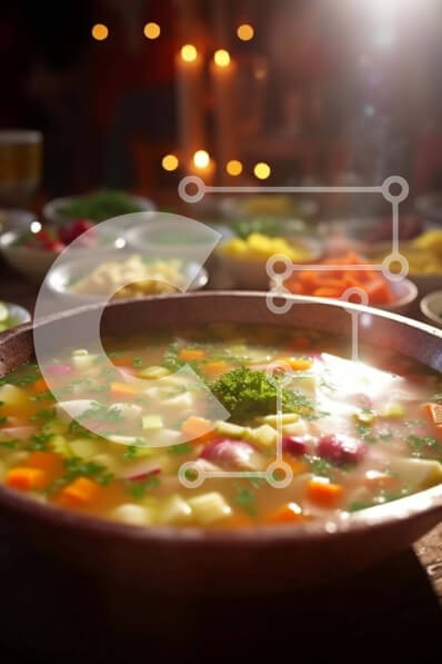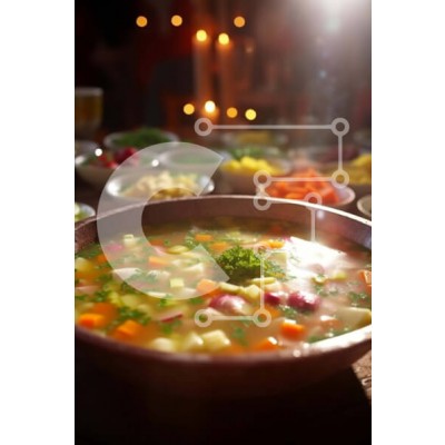 Υπάρχει δυνατότητα προσωποποίησης με δική σας φωτογραφία και προσαρμογής διαστάσεων κατόπιν παραγγελίας. Το συγεκεριμενο puzzle παρουσιαζει Αυτή η εικόνα είναι ένα μπολ σούπας με λαχανικά και ζυμαρικά. Η σούπα είναι καυτή και αχνιστή, με μια ποικιλία από πολύχρωμα λαχανικά όπως καρότα, μπρόκολο και πιπεριές. Τα noodles είναι επίσης ορατά, προσθέτοντας υφή και ουσία στο γεύμα. Το μπολ βρίσκεται σε ένα ξύλινο τραπέζ