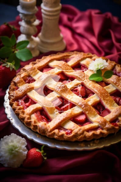 Υπάρχει δυνατότητα προσωποποίησης με δική σας φωτογραφία και προσαρμογής διαστάσεων κατόπιν παραγγελίας. Το συγεκεριμενο puzzle παρουσιαζει Η εικόνα παρουσιάζει μια απολαυστική πίτα φράουλας με δικτυωτό πλέγμα, τοποθετημένη σε ένα τραπέζι. Γύρω από την πίτα είναι τοποθετημένα διάφορα κεριά, που δείχνουν ότι σερβίρεται στους καλεσμένους. Τα φρέσκα λουλούδια στο βάθος ενισχύουν την οπτική έλξη αυτού του απολαυστικού