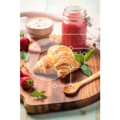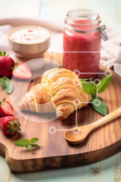 Υπάρχει δυνατότητα προσωποποίησης με δική σας φωτογραφία και προσαρμογής διαστάσεων κατόπιν παραγγελίας. Το συγεκεριμενο puzzle παρουσιαζει Η εικόνα παρουσιάζει ένα σάντουιτς κρουασάν με φράουλες, γιαούρτι και φρέσκα φύλλα μέντας. Ένα κουτάλι υπάρχει επίσης στην ξύλινη σανίδα κοπής. Πολλά μπολ διαφορετικών μεγεθών και σχημάτων είναι διάσπαρτα γύρω από την επιφάνεια του τραπεζιού, συμπεριλαμβανομένου ενός που φαίνε