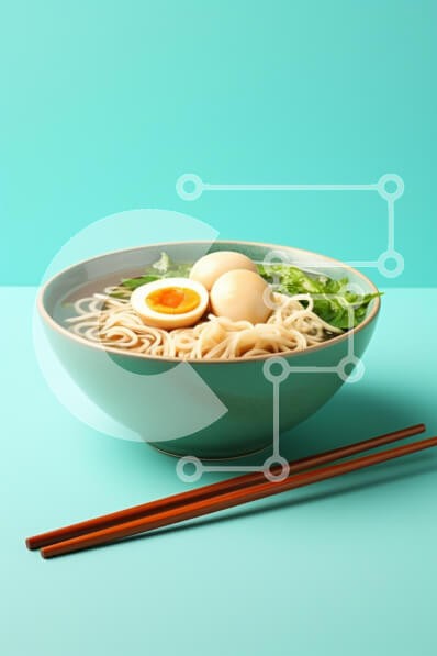 Υπάρχει δυνατότητα προσωποποίησης με δική σας φωτογραφία και προσαρμογής διαστάσεων κατόπιν παραγγελίας. Το συγεκεριμενο puzzle παρουσιαζει Αυτή η εικόνα παρουσιάζει ένα μπολ με νουντλς που παρουσιάζονται όμορφα σε ένα ζωντανό τιρκουάζ φόντο. Το μπολ είναι γεμάτο με ανοιχτόχρωμα νουντλς, ολοκληρώνεται με ένα μαλακό αυγό και γαρνίρεται με πράσινα πράσινα φύλλα. Η σκηνή ενισχύεται από ένα ζευγάρι ξύλινα ξυλάκια τοπο