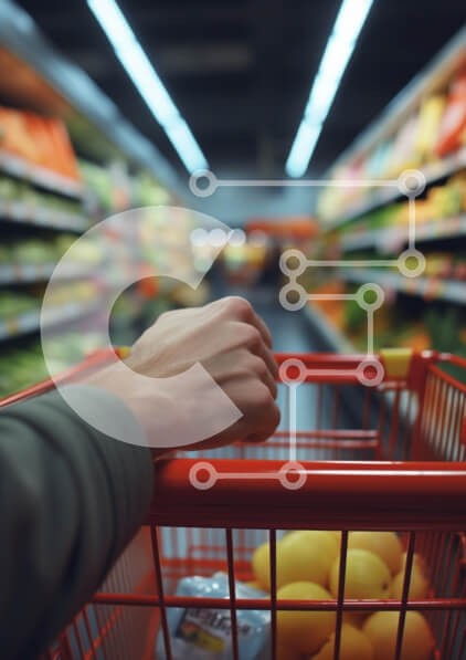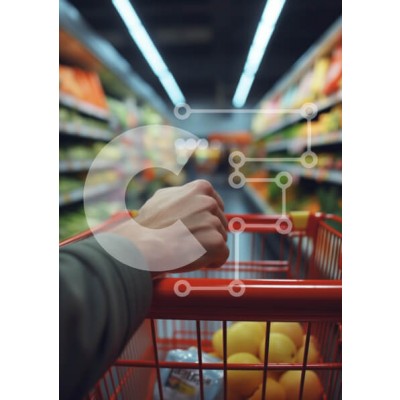Υπάρχει δυνατότητα προσωποποίησης με δική σας φωτογραφία και προσαρμογής διαστάσεων κατόπιν παραγγελίας. Το συγεκεριμενο puzzle παρουσιαζει Η εικόνα δείχνει ένα χέρι που πιάνει τη λαβή ενός καροτσιού αγορών σε ένα διάδρομο σούπερ μάρκετ γεμάτο με πολύχρωμα προϊόντα και συσκευασμένα προϊόντα. Στο πρώτο πλάνο εμφανίζεται το καρότσι γεμάτο με κίτρινα λεμόνια και μια μικρή συσκευασία, όλα σε θολό φόντο με τα ράφια των