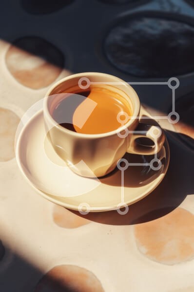 Υπάρχει δυνατότητα προσωποποίησης με δική σας φωτογραφία και προσαρμογής διαστάσεων κατόπιν παραγγελίας. Το συγεκεριμενο puzzle παρουσιαζει Η εικόνα παρουσιάζει ένα ζεστό φλιτζάνι καφέ που στηρίζεται σε ένα πιατάκι, τοποθετημένο σε μια επιφάνεια τραπεζιού με σχέδια. Το φως του ήλιου ρίχνει μια απαλή λάμψη στον καφέ, αναδεικνύοντας το πλούσιο καφέ χρώμα του ενώ δημιουργεί απαλές σκιές γύρω του. Το φόντο είναι ελαφρ