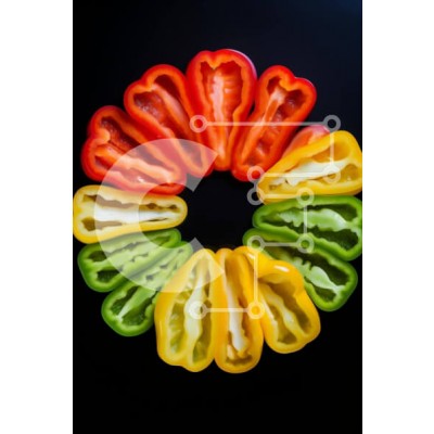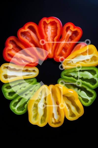 Υπάρχει δυνατότητα προσωποποίησης με δική σας φωτογραφία και προσαρμογής διαστάσεων κατόπιν παραγγελίας. Το συγεκεριμενο puzzle παρουσιαζει Αυτή η εικόνα παρουσιάζει μια κυκλική διάταξη από πολύχρωμες πιπεριές που έχουν κοπεί σε διάφορα σχήματα και μεγέθη. Κάθε πιπεριά τοποθετείται στο κέντρο του κύκλου, με αποτέλεσμα μια οπτικά μαγευτική εμφάνιση. Το τραπέζι περιλαμβάνει μια ποικιλία από πιπεριές, όπως κόκκινο, κ