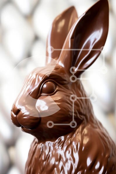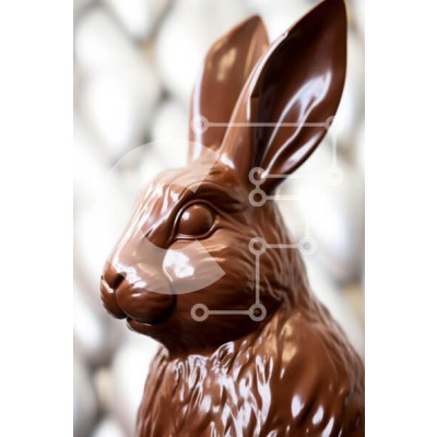 Υπάρχει δυνατότητα προσωποποίησης με δική σας φωτογραφία και προσαρμογής διαστάσεων κατόπιν παραγγελίας. Το συγεκεριμενο puzzle παρουσιαζει Αυτή η εικόνα παρουσιάζει ένα λεπτομερές γλυπτό από σοκολάτα κουνελιού, που δείχνει τη γυαλιστερή επιφάνεια και τα περίπλοκα χαρακτηριστικά του, συμπεριλαμβανομένων των μεγάλων αυτιών και της δομής του προσώπου του. Το κουνέλι εμφανίζεται σε ένα θολό φόντο, τονίζοντας το πλούσ