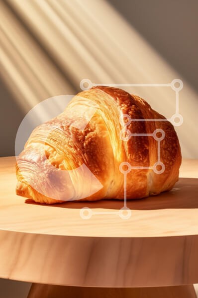 Υπάρχει δυνατότητα προσωποποίησης με δική σας φωτογραφία και προσαρμογής διαστάσεων κατόπιν παραγγελίας. Το συγεκεριμενο puzzle παρουσιαζει Η εικόνα δείχνει ένα φρεσκοψημένο κρουασάν τοποθετημένο σε ένα ξύλινο τραπέζι, που φωτίζεται από το απαλό φως του ήλιου που εισέρχεται από το πλάι. Το χρυσοκάστανο εξωτερικό του είναι ξεφλουδισμένο και ελκυστικό, αιχμαλωτίζοντας όμορφα το φως. Οι στρώσεις του κρουασάν είναι ευ