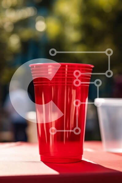 Υπάρχει δυνατότητα προσωποποίησης με δική σας φωτογραφία και προσαρμογής διαστάσεων κατόπιν παραγγελίας. Το συγεκεριμενο puzzle παρουσιαζει Η εικόνα παρουσιάζει δύο κόκκινα πλαστικά ποτήρια σε ένα κόκκινο τραπέζι με ανθρώπους να περπατούν στο βάθος. Το ένα φλιτζάνι είναι άδειο, ενώ το άλλο είναι μερικώς γεμάτο υγρό. Υπάρχουν επίσης διάφορα κομμάτια χαρτοπετσέτες διάσπαρτα γύρω από το τραπέζι, τα οποία θα μπορούσαν