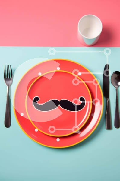 Υπάρχει δυνατότητα προσωποποίησης με δική σας φωτογραφία και προσαρμογής διαστάσεων κατόπιν παραγγελίας. Το συγεκεριμενο puzzle παρουσιαζει Αυτή η εικόνα παρουσιάζει ένα μοναδικό σκηνικό φαγητού με ένα κόκκινο πιάτο, μαχαιροπίρουνα και ένα πιάτο σε σχήμα μουστάκι τοποθετημένο στη μέση του τραπεζιού. Το εντυπωσιακό σκηνικό προσθέτει μια πινελιά δημιουργικότητας σε κάθε γεύμα. Ένα μοναδικό puzzle που συνδυάζει ποιό
