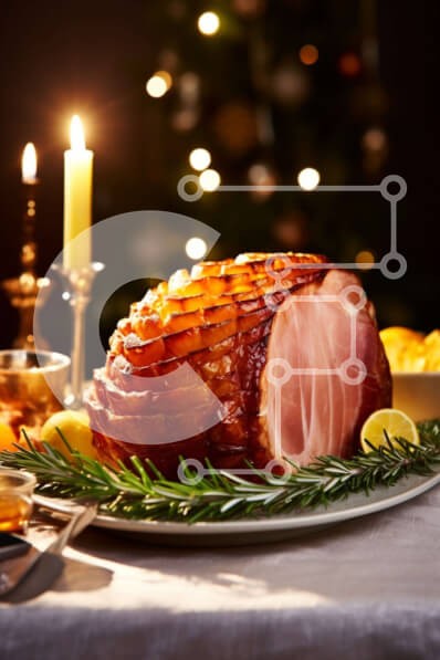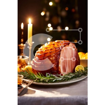 Υπάρχει δυνατότητα προσωποποίησης με δική σας φωτογραφία και προσαρμογής διαστάσεων κατόπιν παραγγελίας. Το συγεκεριμενο puzzle παρουσιαζει Η εικόνα απεικονίζει ένα ζαμπόν με δεντρολίβανο, λεμόνια και άλλα καρυκεύματα πάνω από ένα κομψά διακοσμημένο λευκό πιάτο. Ένα κερί είναι επίσης παρόν στο βάθος, προσθέτοντας στη γιορτινή ατμόσφαιρα της σκηνής. Υπάρχουν διάφορα πιρούνια και μαχαίρια διάσπαρτα γύρω από το τραπέ