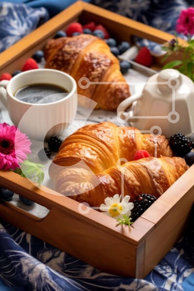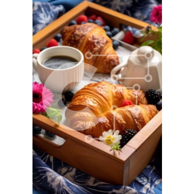 Υπάρχει δυνατότητα προσωποποίησης με δική σας φωτογραφία και προσαρμογής διαστάσεων κατόπιν παραγγελίας. Το συγεκεριμενο puzzle παρουσιαζει Αυτή η εικόνα παρουσιάζει έναν ξύλινο δίσκο γεμάτο με κρουασάν, καφέ και λουλούδια. Ένα φλιτζάνι τοποθετείται στην κορυφή του δίσκου, πιθανόν για να πιείτε τον καφέ. Αρκετά μούρα είναι διάσπαρτα γύρω από το τραπέζι, δημιουργώντας ένα γραφικό υπαίθριο σκηνικό πρωινού. Ένα μονα