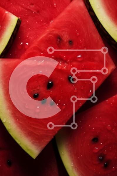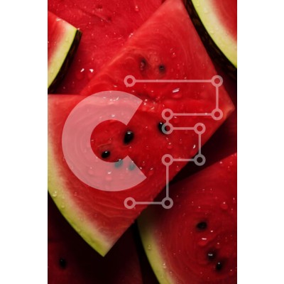 Υπάρχει δυνατότητα προσωποποίησης με δική σας φωτογραφία και προσαρμογής διαστάσεων κατόπιν παραγγελίας. Το συγεκεριμενο puzzle παρουσιαζει Αυτή η εικόνα παρουσιάζει ένα κοντινό πλάνο από πολλές φέτες καρπούζι, οι οποίες είναι τοποθετημένες η μία πάνω στην άλλη και καλύπτονται με σταγονίδια νερού. Υπάρχουν επίσης μικρά κομμάτια κόκκινων σταφυλιών διάσπαρτα στην επιφάνεια του καρπού. Τα ζωηρά χρώματα και τα αστραφτ
