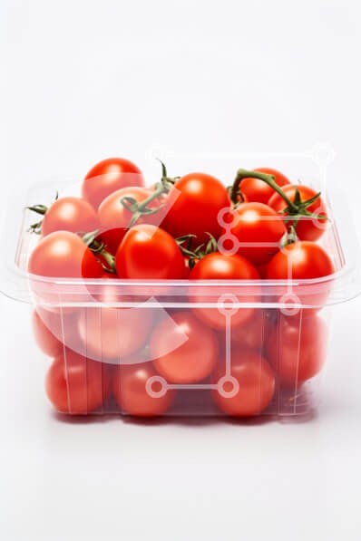 Υπάρχει δυνατότητα προσωποποίησης με δική σας φωτογραφία και προσαρμογής διαστάσεων κατόπιν παραγγελίας. Το συγεκεριμενο puzzle παρουσιαζει Αυτή η εικόνα δείχνει ένα διαφανές πλαστικό δοχείο γεμάτο με έντονα κόκκινα ντοματίνια. Οι ντομάτες είναι παχουλές και γυαλιστερές, με τους πράσινους μίσχους τους να είναι ακόμα προσκολλημένοι, δημιουργώντας μια ζωντανή και φρέσκια εμφάνιση. Το φόντο είναι απλό και λευκό, τονί