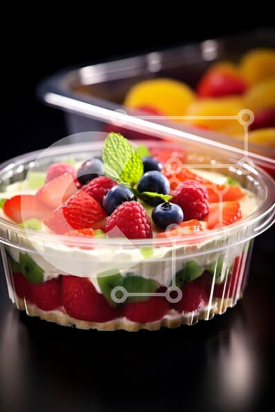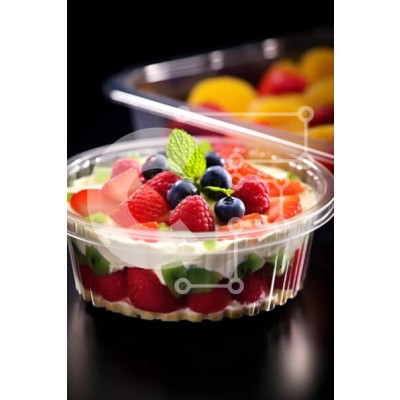 Υπάρχει δυνατότητα προσωποποίησης με δική σας φωτογραφία και προσαρμογής διαστάσεων κατόπιν παραγγελίας. Το συγεκεριμενο puzzle παρουσιαζει Η εικόνα δείχνει ένα πλαστικό δοχείο για επιδόρπιο γεμάτο με μια ποικιλία από φρέσκα φρούτα όπως φράουλες, σμέουρα και βατόμουρα. Δίπλα στο κύριο δοχείο υπάρχουν δύο επιπλέον δοχεία που θα μπορούσαν να χρησιμοποιηθούν για την αποθήκευση ή το σερβίρισμα του γλυκού. Μια νότα φρε