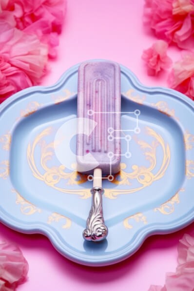 Υπάρχει δυνατότητα προσωποποίησης με δική σας φωτογραφία και προσαρμογής διαστάσεων κατόπιν παραγγελίας. Το συγεκεριμενο puzzle παρουσιαζει Η εικόνα δείχνει ένα παγωτό ποπ τοποθετημένο σε ένα μπλε πιάτο, με ροζ λουλούδια τοποθετημένα γύρω του. Δύο ασημένια πιρούνια βρίσκονται σε κοντινή απόσταση, υποδηλώνοντας ένα κομψό περιβάλλον για να απολαύσετε την παγωμένη απόλαυση. Ένα μοναδικό puzzle που συνδυάζει ποιότητα