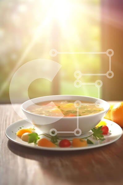 Υπάρχει δυνατότητα προσωποποίησης με δική σας φωτογραφία και προσαρμογής διαστάσεων κατόπιν παραγγελίας. Το συγεκεριμενο puzzle παρουσιαζει Αυτή η εικόνα απεικονίζει ένα νόστιμο μπολ σούπας με διάφορα λαχανικά, τοποθετημένο σε ένα ξύλινο τραπέζι μπροστά από ένα παράθυρο με το φως του ήλιου να περνάει μέσα. Οι ζεστοί τόνοι του ξύλου και ο φυσικός φωτισμός δημιουργούν μια ζεστή και φιλόξενη ατμόσφαιρα που ενισχύει τ