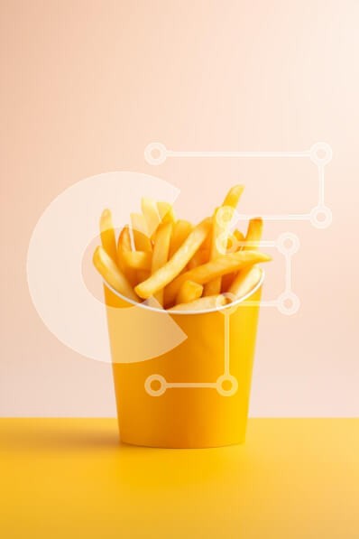 Υπάρχει δυνατότητα προσωποποίησης με δική σας φωτογραφία και προσαρμογής διαστάσεων κατόπιν παραγγελίας. Το συγεκεριμενο puzzle παρουσιαζει Η εικόνα παρουσιάζει ένα ζωντανό κίτρινο δοχείο γεμάτο με τραγανές τηγανιτές πατάτες, σε ένα απαλό παστέλ φόντο. Οι πατάτες είναι χρυσαφένιες και φαίνονται φρεσκοψημένες, διατεταγμένες με απλό τρόπο, με μερικές να προεξέχουν από το δοχείο. Τα ζεστά χρώματα των πατατών έρχονται