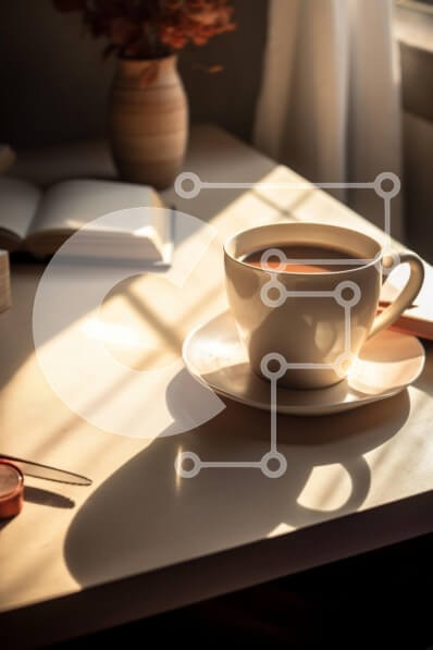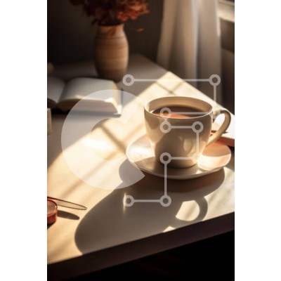 Υπάρχει δυνατότητα προσωποποίησης με δική σας φωτογραφία και προσαρμογής διαστάσεων κατόπιν παραγγελίας. Το συγεκεριμενο puzzle παρουσιαζει Η εικόνα απαθανατίζει μια γαλήνια στιγμή καφέ σε ένα ηλιόλουστο τραπέζι. Ένα λευκό κεραμικό φλιτζάνι γεμάτο με σκούρο καφέ στηρίζεται σε ένα ασορτί πιατάκι, ρίχνοντας απαλές σκιές στην επιφάνεια. Το ζεστό φως του ήλιου ρέει μέσα από ένα κοντινό παράθυρο, δημιουργώντας μια ζεστ