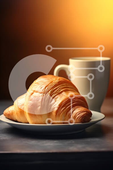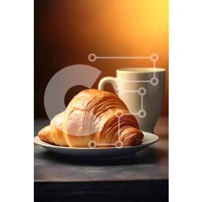 Υπάρχει δυνατότητα προσωποποίησης με δική σας φωτογραφία και προσαρμογής διαστάσεων κατόπιν παραγγελίας. Το συγεκεριμενο puzzle παρουσιαζει Η εικόνα παρουσιάζει ένα νόστιμο χρυσοκαφέ κρουασάν τοποθετημένο σε ένα λευκό πιάτο, συνοδευόμενο από ένα φλιτζάνι καφέ στον ατμό σε μια λευκή κούπα. Το φόντο λάμπει με ζεστές πορτοκαλί αποχρώσεις, δημιουργώντας μια ζεστή και φιλόξενη ατμόσφαιρα. Τα ξεφλουδισμένα στρώματα του