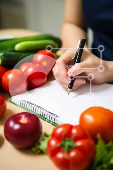 Υπάρχει δυνατότητα προσωποποίησης με δική σας φωτογραφία και προσαρμογής διαστάσεων κατόπιν παραγγελίας. Το συγεκεριμενο puzzle παρουσιαζει Η εικόνα απεικονίζει μια γυναίκα να γράφει σε ένα ανοιχτό σημειωματάριο δίπλα σε πολλά λαχανικά, όπως ντομάτες, αγγούρια και πιπεριές. Ένα στυλό υπάρχει επίσης στο τραπέζι, το οποίο μπορεί να δείχνει ότι το χρησιμοποιεί για να γράψει τις σκέψεις της για τα λαχανικά. Επιπλέον,