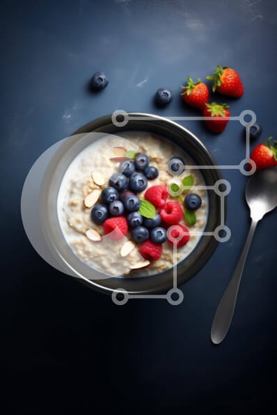 Υπάρχει δυνατότητα προσωποποίησης με δική σας φωτογραφία και προσαρμογής διαστάσεων κατόπιν παραγγελίας. Το συγεκεριμενο puzzle παρουσιαζει Αυτή η εικόνα παρουσιάζει ένα μπολ με πλιγούρι βρώμης γεμάτο με φρέσκα μούρα, συμπεριλαμβανομένων φράουλες και βατόμουρα. Ένα κουτάλι περιλαμβάνεται επίσης στην εικόνα, υποδηλώνοντας ότι μπορεί να χρησιμοποιηθεί για να απολαύσετε ή να αναμίξετε το πλιγούρι βρώμης. Είναι μια οπ