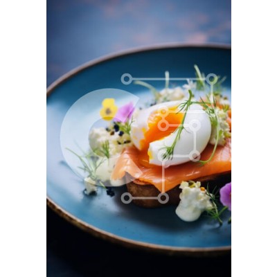 Υπάρχει δυνατότητα προσωποποίησης με δική σας φωτογραφία και προσαρμογής διαστάσεων κατόπιν παραγγελίας. Το συγεκεριμενο puzzle παρουσιαζει Αυτή η εικόνα δείχνει ένα όμορφα επιμεταλλωμένο πιάτο με καπνιστό σολομό πάνω από μια φέτα ψωμί. Ένα τέλεια ψημένο αυγό ποσέ, με τον κρόκο του ελαφρώς ρευστό, είναι φωλιασμένο πάνω στον σολομό. Γύρω από το πιάτο υπάρχουν λεπτές γαρνιτούρες που περιλαμβάνουν βρώσιμα λουλούδια,
