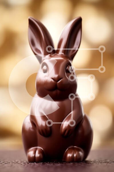 Υπάρχει δυνατότητα προσωποποίησης με δική σας φωτογραφία και προσαρμογής διαστάσεων κατόπιν παραγγελίας. Το συγεκεριμενο puzzle παρουσιαζει Αυτή η εικόνα παρουσιάζει ένα γυαλιστερό, σοκολατένιο ειδώλιο κουνελιού που κάθεται όρθιο σε ένα τραπέζι. Το κουνέλι έχει μια αξιολάτρευτη έκφραση με μεγάλα αυτιά και στρογγυλά μάτια, που το κάνουν να φαίνεται απολαυστικό και φιλόξενο. Το φόντο είναι θολό με απαλά χρυσά φώτα,