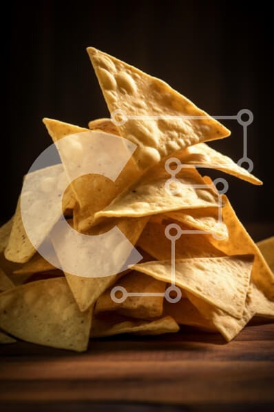 Υπάρχει δυνατότητα προσωποποίησης με δική σας φωτογραφία και προσαρμογής διαστάσεων κατόπιν παραγγελίας. Το συγεκεριμενο puzzle παρουσιαζει Η εικόνα δείχνει μια πυραμίδα από μάρκες τορτίγιας στοιβαγμένες καλλιτεχνικά σε σκούρο φόντο. Τα τσιπς έχουν τριγωνικό σχήμα και εμφανίζουν μια ελαφρώς ανομοιόμορφη υφή με μικρές φυσαλίδες και στίγματα, ενδεικτικά της τηγανισμένης φύσης τους. Ο φωτισμός ρίχνει ζεστούς τόνους σ