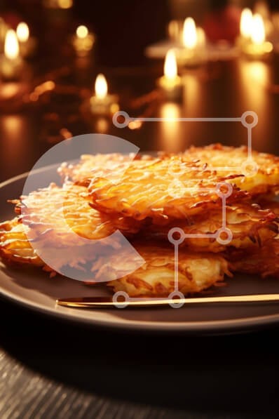 Υπάρχει δυνατότητα προσωποποίησης με δική σας φωτογραφία και προσαρμογής διαστάσεων κατόπιν παραγγελίας. Το συγεκεριμενο puzzle παρουσιαζει Αυτή η εικόνα παρουσιάζει ένα πιάτο με νόστιμες τηγανητές τηγανητές πατάτες. Οι τηγανίτες είναι χρυσοκάστανες και τραγανές και είναι τακτοποιημένες στο πιάτο. Γύρω από το πιάτο υπάρχουν κεριά, δημιουργώντας μια εορταστική και ζεστή ατμόσφαιρα. Ένα μαχαίρι και ένα πιρούνι υπάρχ
