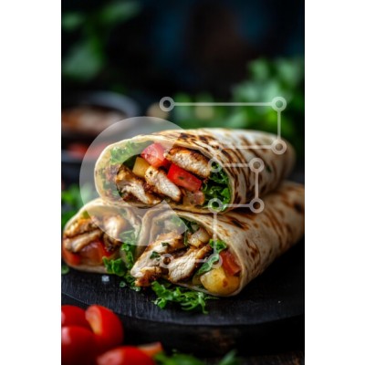 Υπάρχει δυνατότητα προσωποποίησης με δική σας φωτογραφία και προσαρμογής διαστάσεων κατόπιν παραγγελίας. Το συγεκεριμενο puzzle παρουσιαζει Η εικόνα παρουσιάζει δύο νόστιμα περιτυλίγματα στοιβαγμένα σε μια ξύλινη σανίδα, γεμάτα με ψητό κοτόπουλο, φρέσκο μαρούλι, ντομάτες σε κύβους και ανανά. Τα περιτυλίγματα τυλίγονται όμορφα και αναδεικνύουν τα πολύχρωμα συστατικά τους. Το φόντο είναι απαλά θολό με πράσινο, δημ
