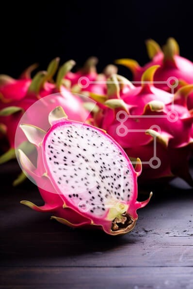 Υπάρχει δυνατότητα προσωποποίησης με δική σας φωτογραφία και προσαρμογής διαστάσεων κατόπιν παραγγελίας. Το συγεκεριμενο puzzle παρουσιαζει Η εικόνα παρουσιάζει μια ζωντανή εμφάνιση φρούτου δράκου, με ένα κομμένο μισό που αποκαλύπτει τη λευκή σάρκα του, στολισμένη με μικρούς μαύρους σπόρους. Το έντονο ροζ εξωτερικό δέρμα και τα λέπια με τις πράσινες άκρες δημιουργούν μια εντυπωσιακή αντίθεση στο σκούρο φόντο, αναδ