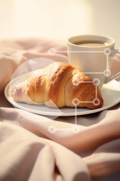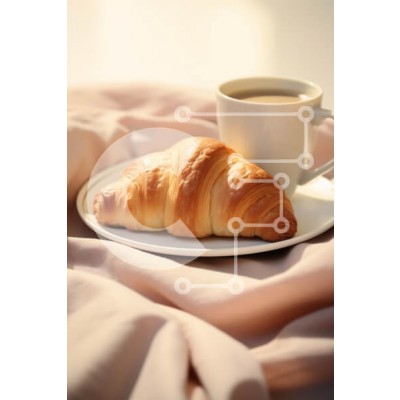 Υπάρχει δυνατότητα προσωποποίησης με δική σας φωτογραφία και προσαρμογής διαστάσεων κατόπιν παραγγελίας. Το συγεκεριμενο puzzle παρουσιαζει Αυτή η εικόνα δείχνει ένα φρεσκοψημένο κρουασάν τοποθετημένο σε ένα λευκό πιάτο δίπλα σε ένα φλιτζάνι καφέ που αχνίζει. Το κρουασάν είναι χρυσοκαφέ με λεπτή υφή, αναδεικνύοντας τις βουτυρώδεις στρώσεις του. Το φόντο διαθέτει απαλό, ντραπέ ύφασμα σε απαλούς ροζ τόνους, δίνοντας