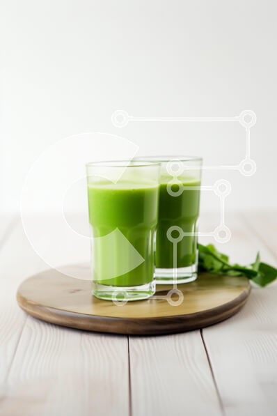 Υπάρχει δυνατότητα προσωποποίησης με δική σας φωτογραφία και προσαρμογής διαστάσεων κατόπιν παραγγελίας. Το συγεκεριμενο puzzle παρουσιαζει Αυτή η εικόνα παρουσιάζει δύο ποτήρια ζωηρό πράσινο χυμό τοποθετημένα σε μια ξύλινη κυκλική σανίδα. Ο χυμός φαίνεται φρέσκος και υγιεινός, πιθανότατα φτιαγμένος από φυλλώδη χόρτα και σερβίρεται σε καθαρά, ψηλά ποτήρια. Δίπλα στα ποτήρια είναι ένα μικρό μάτσο πράσινα φύλλα, που